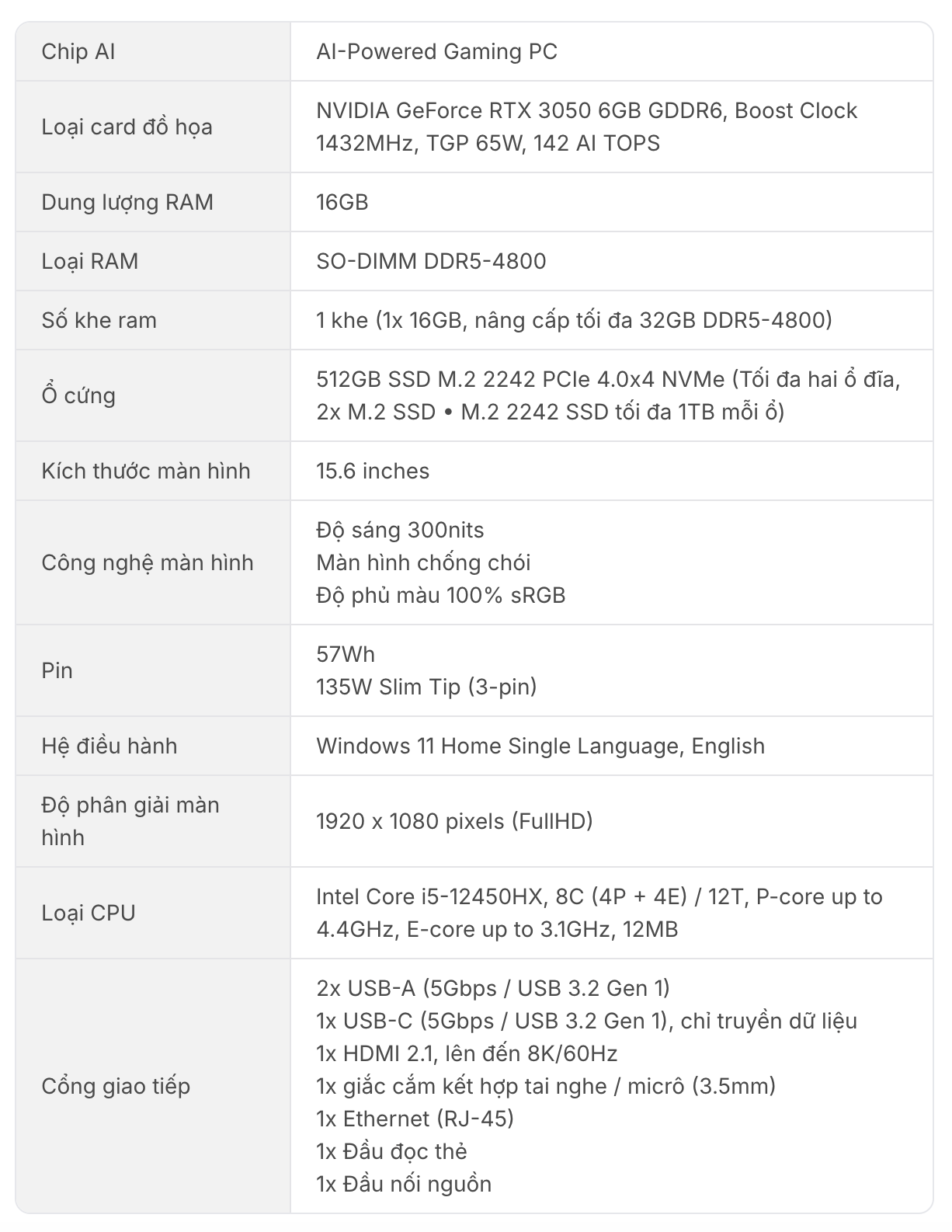 Lenovo LOQ 2024 i5-12450HX - Thời lượng pin 84Wh ổn định