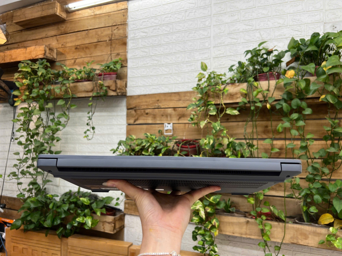 Máy có màu Luna Grey sang trọng, chuyên nghiệp. Lớp sơn nhám giúp hạn chế bám vân tay và bụi bẩn. Nhìn chung, Lenovo LOQ 15 2024 có một thiết kế mạnh mẽ, cá tính và sang trọng, phù hợp với nhiều đối tượng người dùng, đặc biệt là dân chơi game và giới trẻ.
